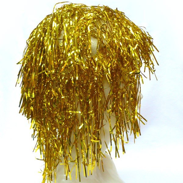 メタリックティンセルウィッグ ゴールドキラキラで目立つよ!