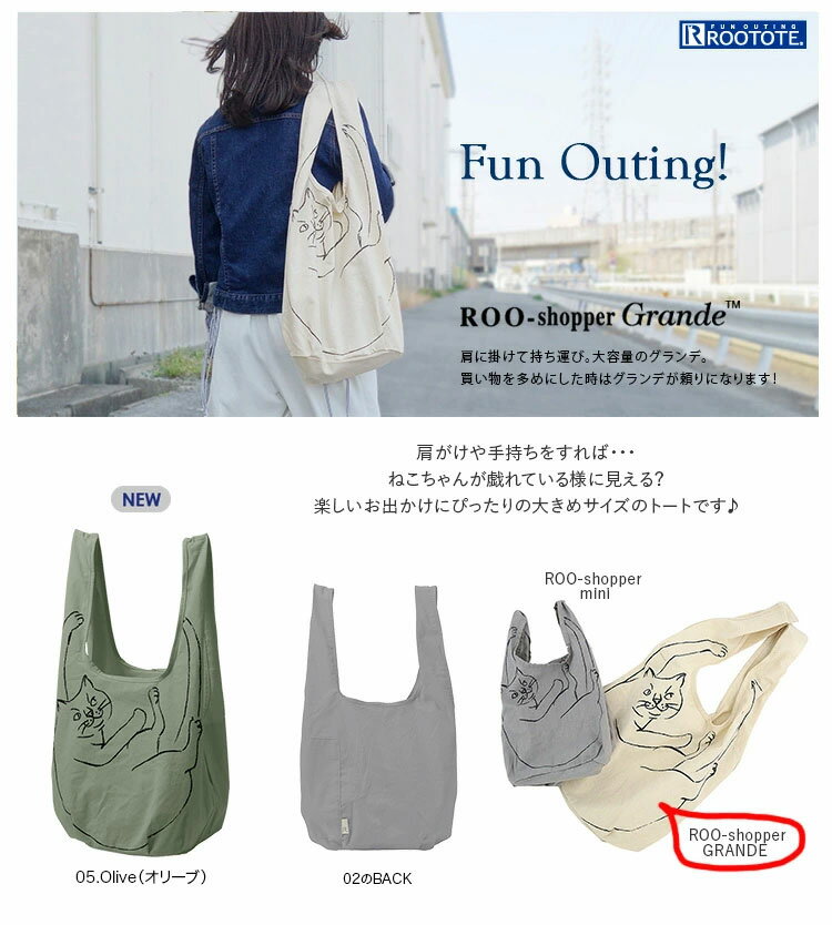 毎日のお買い物用エコバッグ! 肩にかけても持ち運べる大容量サイズのルーショッパーグランデ。