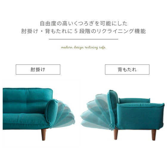 ソファ ソファー 2人掛け ローソファ カウチソファ リクライニング ソファーベッド 北欧 おしゃれ 西海岸 コンパクト 一人暮らし ワンルーム 二人掛けソファー グリーン 緑 グレー ネイビー ブラウン ターコイズ 2Pリクライニングソファ solano〔ソラノ〕