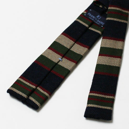 【秋冬】新作 FRANCO BASSI ( フランコバッシ ) / ウール コットン ペーパー アルパカ ボーダー タイ【ネイビー】【送料無料】