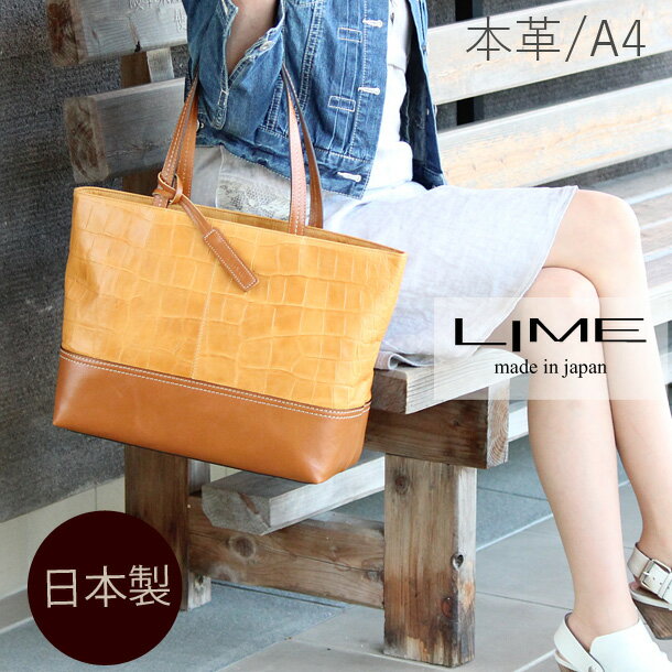 商品詳細 ブランドLIME(来夢)ライムライン マキシムクロコ2タイプ クロコダイル型押し本革トートバッグサイズ 縦:26センチ 横(底部):32.5センチ 横(上部ファスナー口):36センチ 底マチ:13センチ 持ち手幅:1.8センチ 持ち手全長:47センチ 持ち手内径:20.5センチ 重さ:545グラム 品番 L-1836-12カラー キャメル素材 牛革(クロコ 型押し))素材タイプ ソフト キャメルは山吹色を濃くしてマスタード色っぽくしたようなお色感。